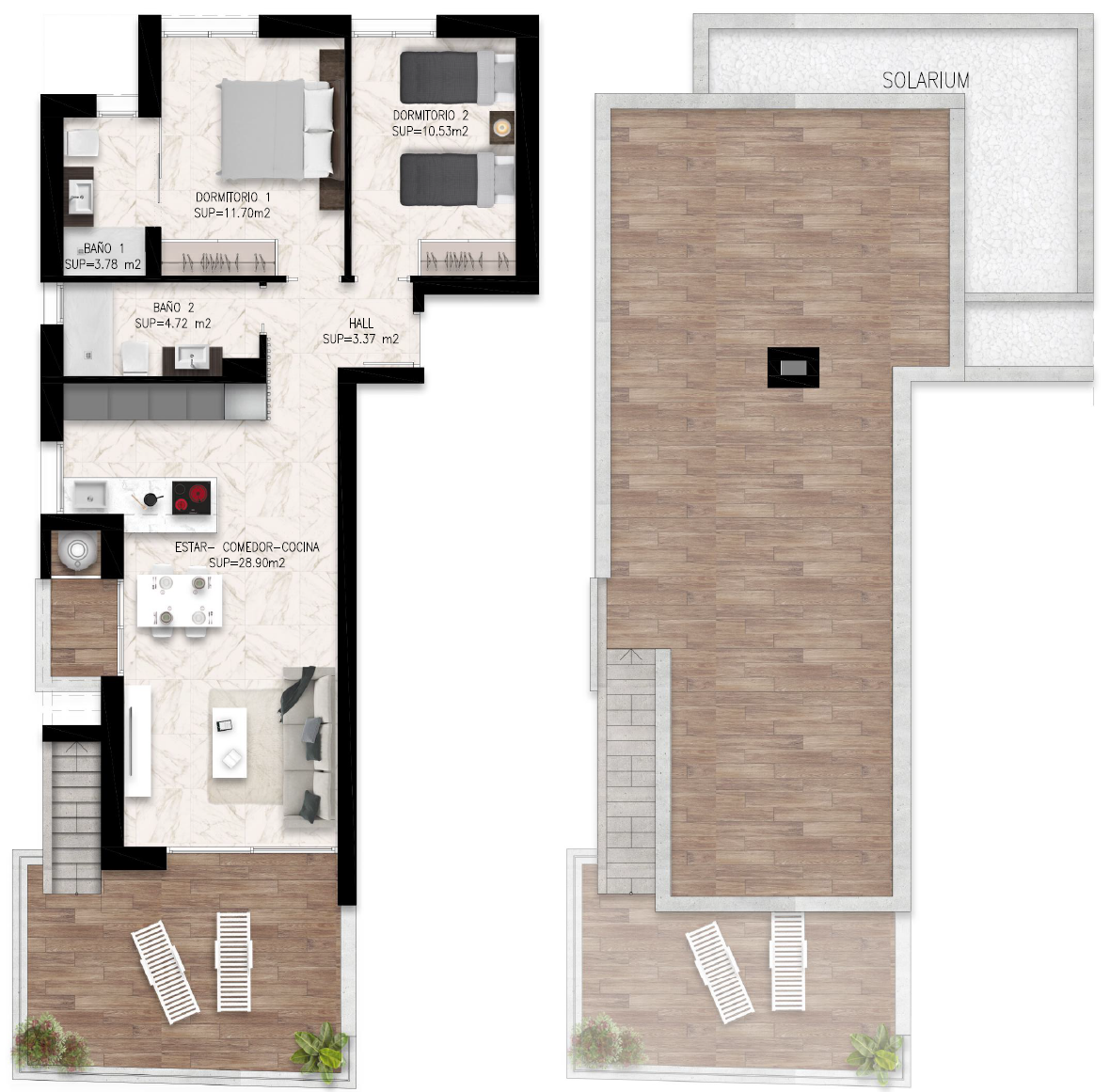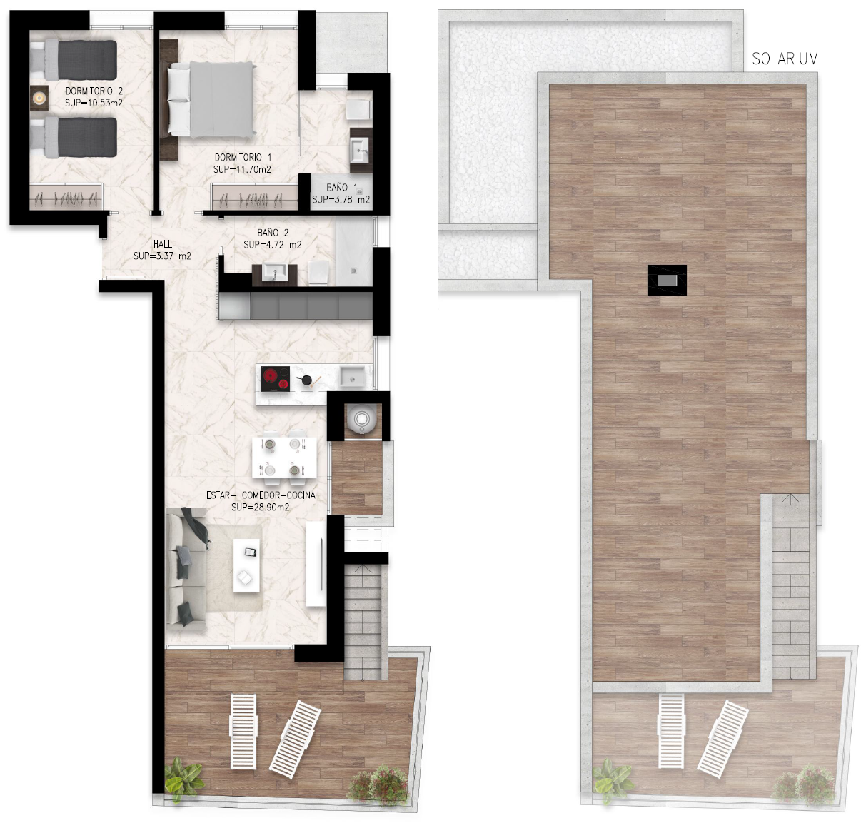 Kompleks mieszkaniowy „Lo Marabú Bungalows” składa się z 84 nowoczesnych bungalowów położonych w Lo Marabú, 10 minut od najlepszych plaż na Costa Blanca. Każdy bungalow oferuje dwie sypialnie i dwie łazienki, wszystkie na jednym poziomie. Parter oferuje duży taras, a piętro prywatne solarium.