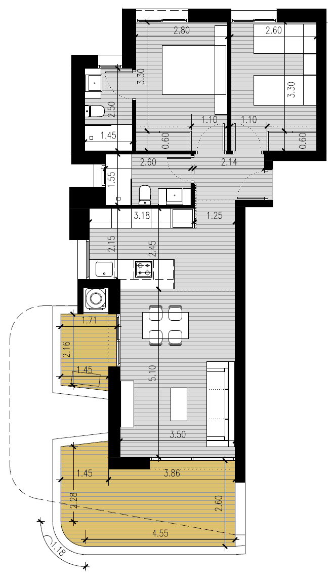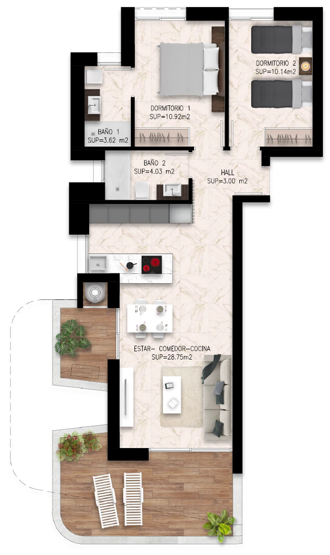 Kompleks mieszkalny składa się z 112 apartamentów z 2 sypialniami i 2 łazienkami, rozlokowanych w siedmiopiętrowym bloku, zbudowanym w nowoczesnym i innowacyjnym stylu, położonym w San Miguel de Salinas, 8 km od plaż Orihuela Costa, Torrevieja i Guardamar.