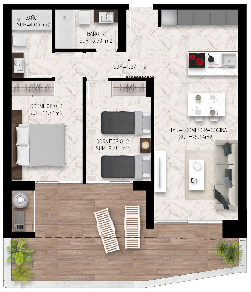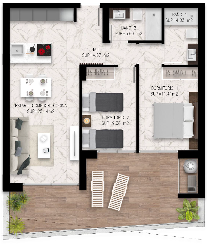 Kompleks mieszkalny składa się z 112 apartamentów z 2 sypialniami i 2 łazienkami, rozlokowanych w siedmiopiętrowym bloku, zbudowanym w nowoczesnym i innowacyjnym stylu, położonym w San Miguel de Salinas, 8 km od plaż Orihuela Costa, Torrevieja i Guardamar.