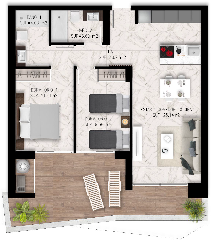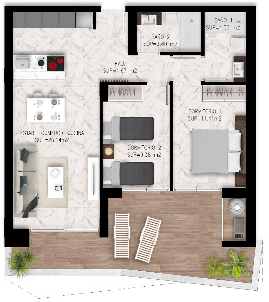 Additionally, as a launch offer included in the price: Furniture package, appliances, ducted air conditioning and LG, Hisense or similar unit, roller blinds and lamps (for detailed offer information please contact us).